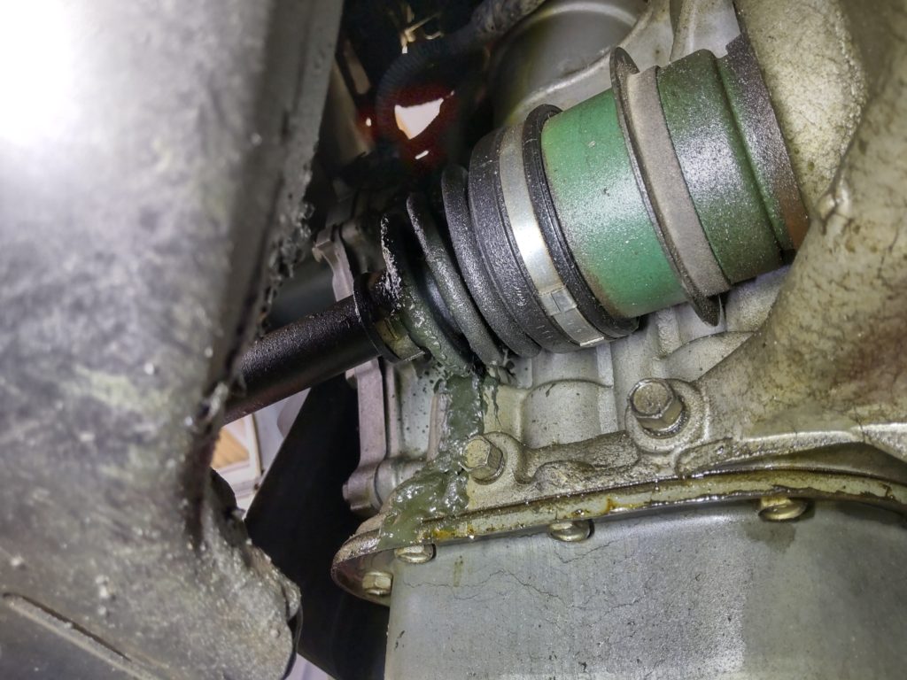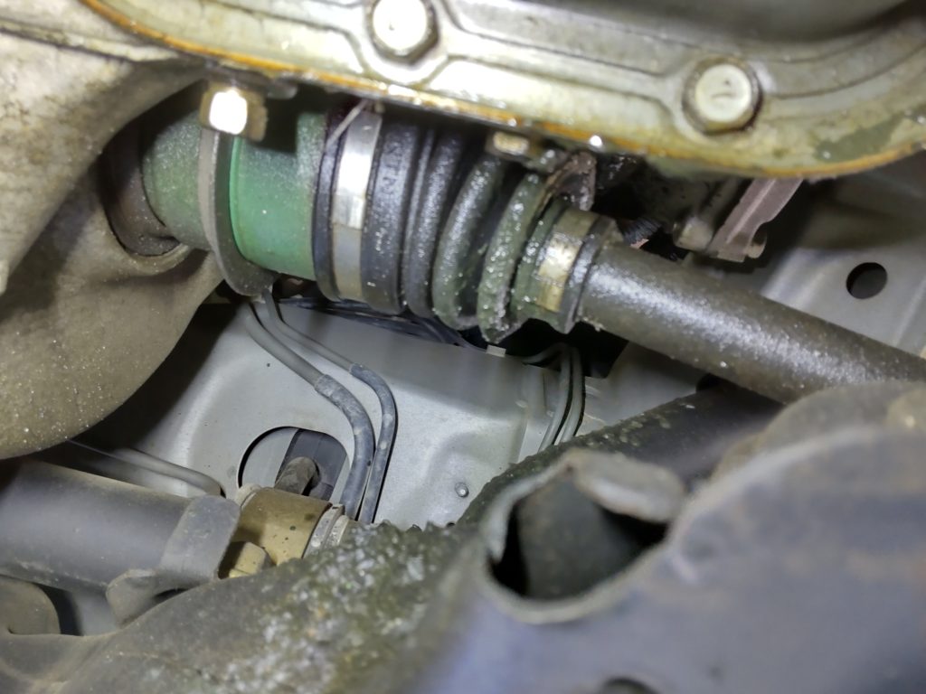 案の定、ドライブシャフトのブーツが切れています 左右のドラシャのインとアウト全てで…
