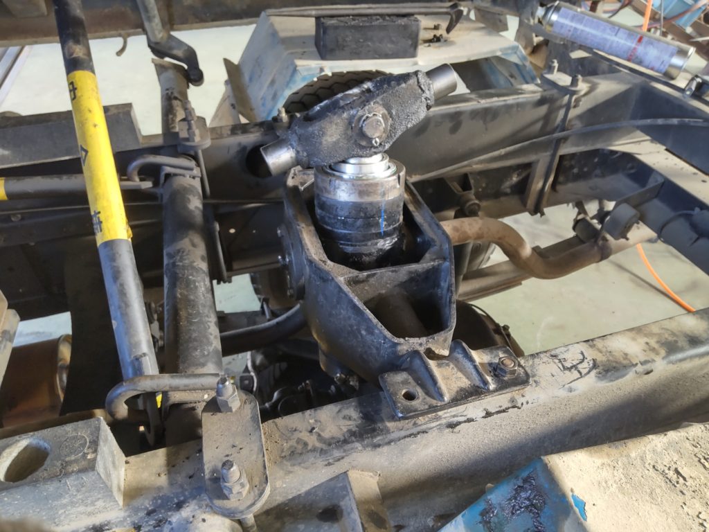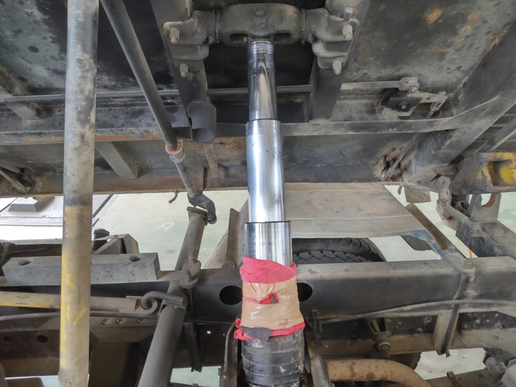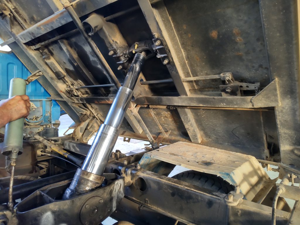 シリンダーを外しますので、荷台が落ちてこないようにしないといけません