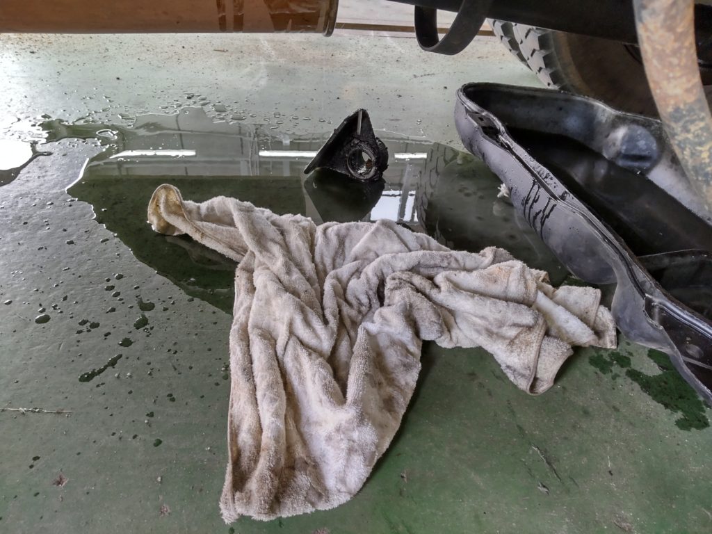 受けを用意していましたが、思ったより元気がよく床が油まみれになりました