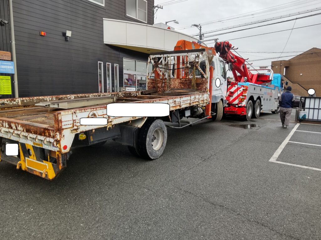 走行不能になったとのことでレッカーで入庫です