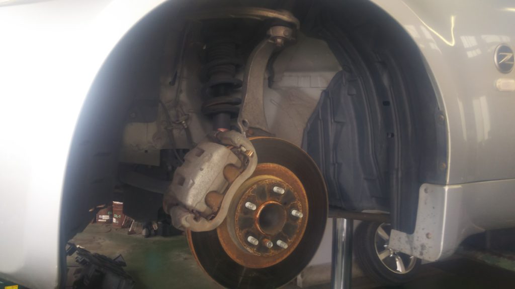 まずは、ブレーキキャリパーとブラケット、ブレーキローターを外します