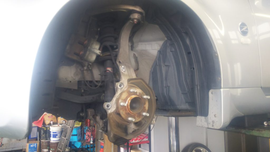 そうしましたら、逆の手順で新品のナックルに部品を移植・車体へ取付していけば