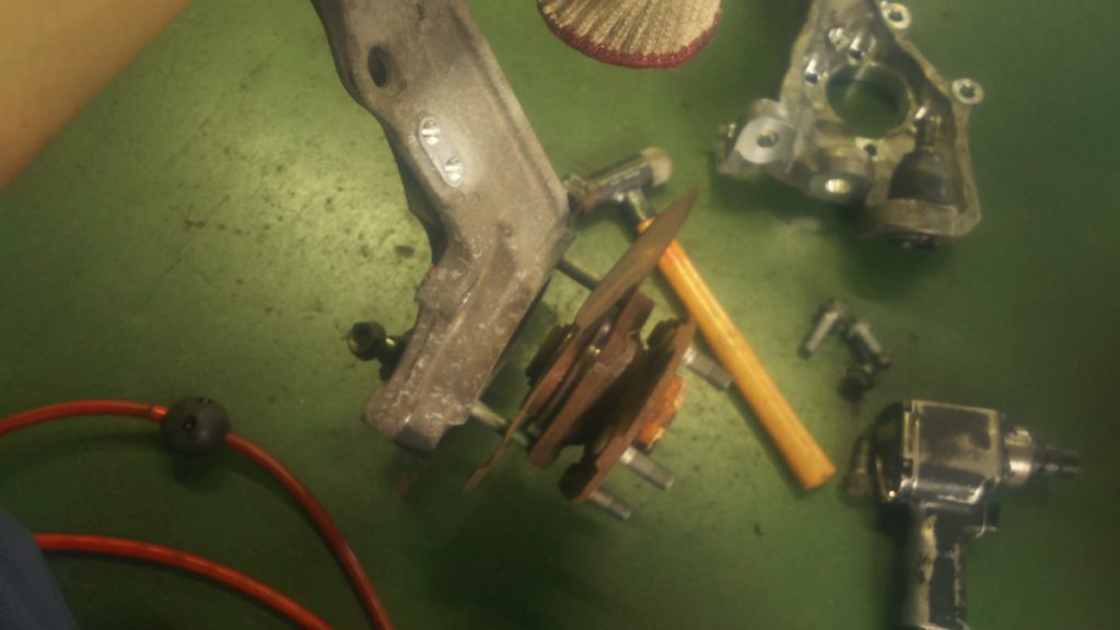 ナックルに残っているハブとバックプレートを外しましたら