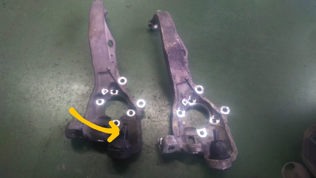 多くの車は、ロアアームにボールジョイントが付いていますが、この車はナックル側に付いています