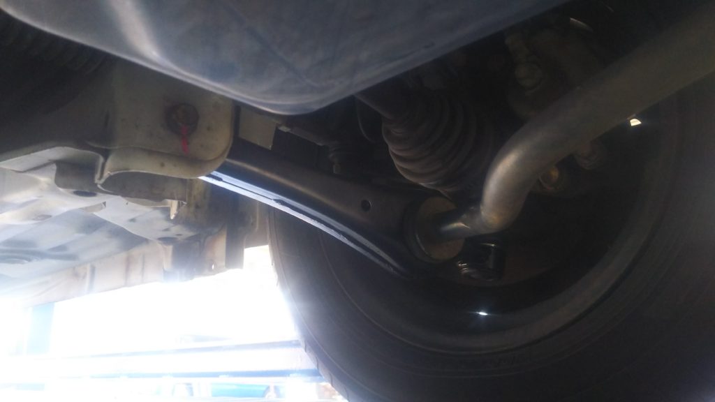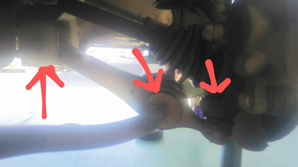点検を進めていくと、左のロアのボールジョイントにガタを発見しました